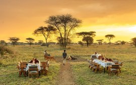 Dieser Tag gehört ganz der Serengeti, dem berühmtesten Nationalpark Afrikas. Die Central Serengeti bietet das ganze Jahr über hervorragende Tierbeobachtungen: Große Löwenrudel ruhen im Schatten, Geparden lauern auf Anhöhen, Leoparden dösen in Akazienbäumen, und endlose Herden von Gnus, Zebras und Gazellen durchziehen die weiten Ebenen. Die klassische Safari-Landschaft mit Akazienwäldern und offenem Grasland breitet sich vor Ihnen aus, so weit das Auge reicht. Sie bestimmen selbst den Rhythmus des Tages – ob Sie ein Picknick im Busch bevorzugen oder kurz ins Camp zurückkehren möchten. Wenn die Abendsonne die Savanne in goldenes Licht taucht, kehren Sie zum Moyo Camp am Fluss zurück, wo in der Ferne bereits die Geräusche der Nacht erklingen.