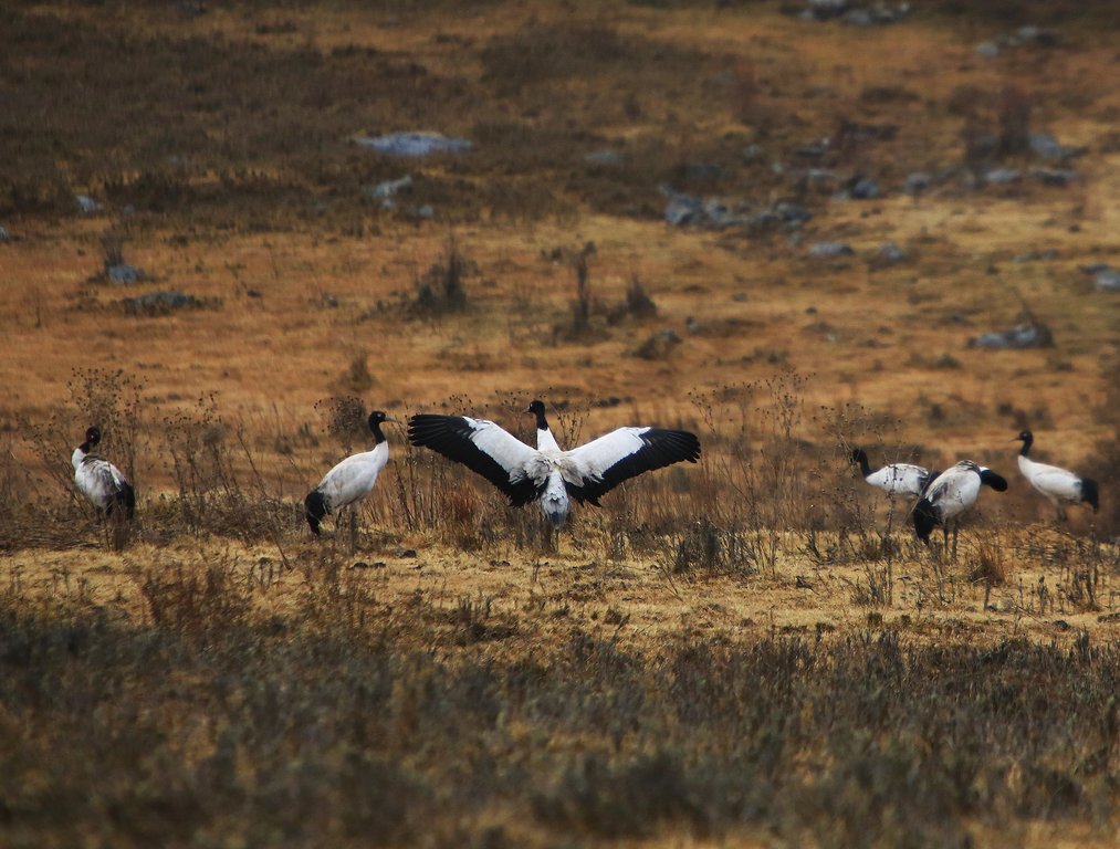 Die Landschaft verändert sich bei der Fahrt ins Phobjikha Tal. Dieses Hochtal (ca. 3.000 m) ist Winterrastplatz der seltenen Schwarzhalskraniche, die vom tibetischen Hochland hier hinziehen, um vor dem harten Winter zu fliehen.