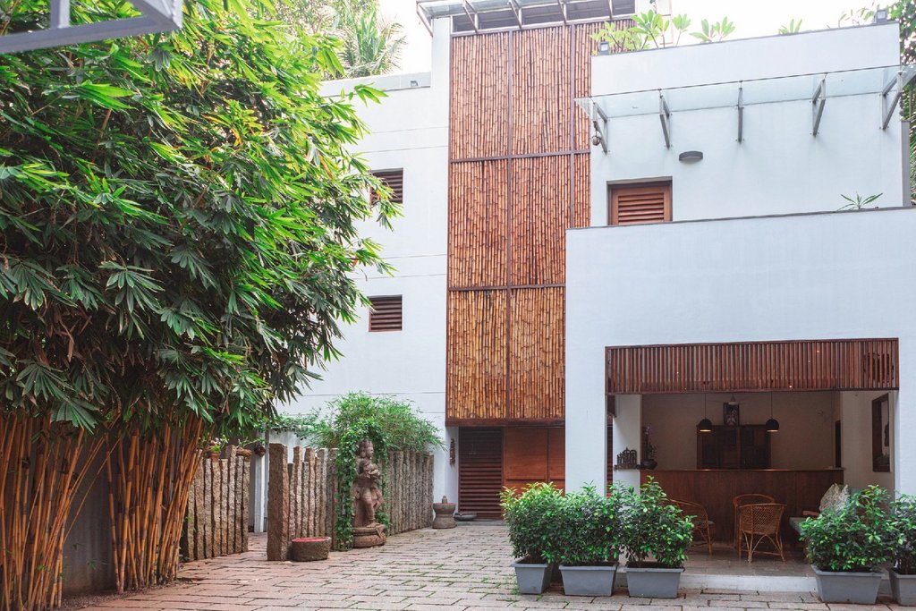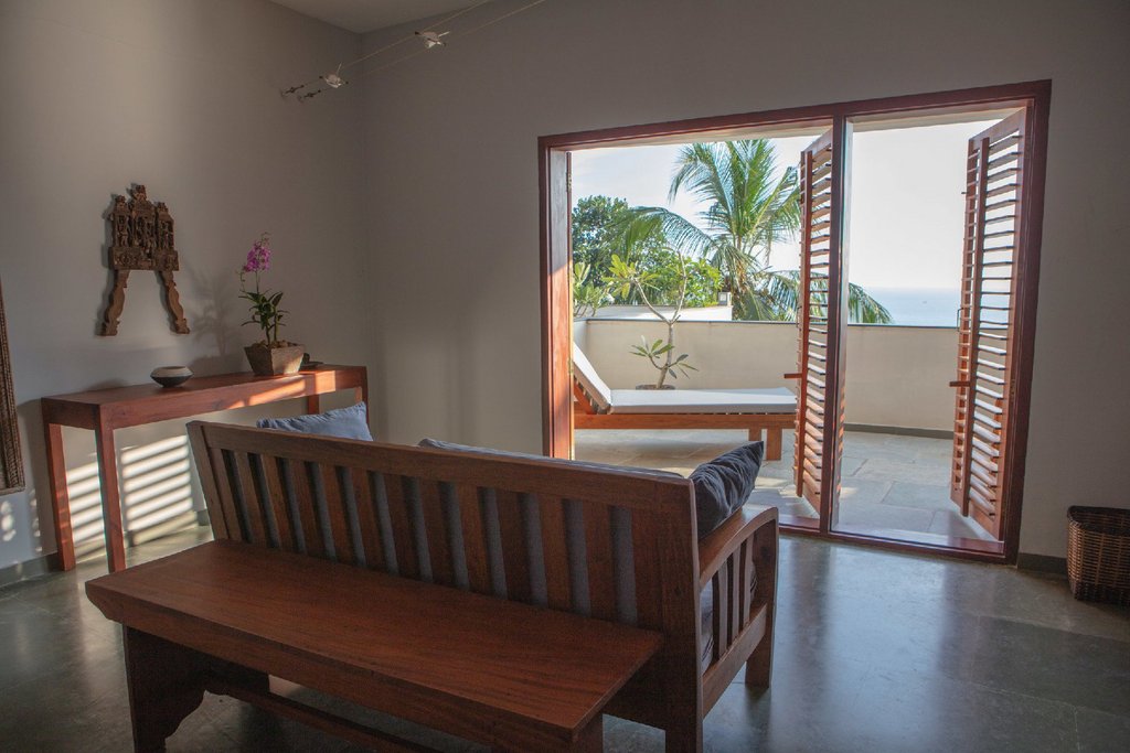 Das Cliff View liegt hoch auf den Klippen über Keralas palmengesäumtem Strand – ein bewusst gewählter Rückzugsort mit weitem Blick auf den Ozean. Die klare Bauhaus-Architektur prägt das kleine Haus mit nur neun Zimmern. Alle verfügen über Balkon oder Terrasse mit Meerblick. Die Comfort Zimmer bieten ein großes Doppelbett und modernes Bad, die drei großzügigen Loft-Zimmer zusätzlich einen zweiten Schlafraum. Auf Klimaanlage wurde bewusst verzichtet – natürliche Luftzirkulation und Ventilatoren sorgen für angenehmes Raumklima. WLAN ist verfügbar, Fernseher gibt es nicht.