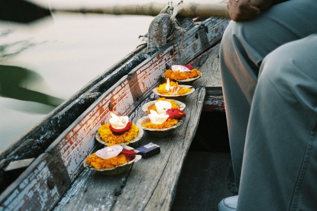Am Abend erleben Sie die Ganga Aarti, die tägliche Lichtzeremonie am Ufer des Ganges. Priester schwingen Feuerlampen, Glocken läuten, Gesänge erfüllen die Luft – ein Ritual, das tausende Jahre alt ist und bis heute praktiziert wird.