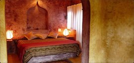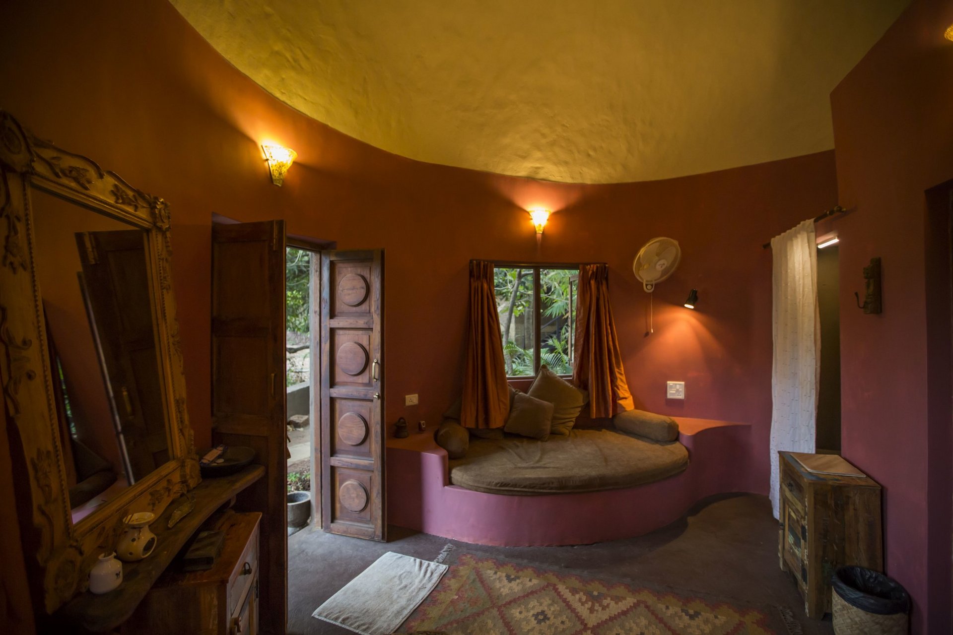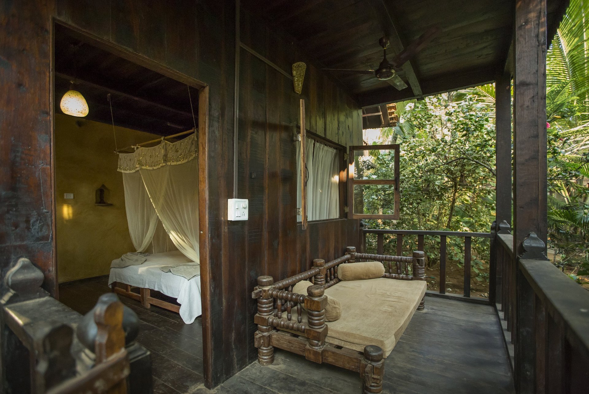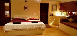 Die Baumhäuser und Ecolodges muten durch ihre Bauart aus Holz fast indonesisch an, im Inneren spiegelt sich jedoch mit jeder Menge natürlichen Materialien und antiken Möbeln indisches und auch marokkanisches Design wider. Von Ihrem Balkon bzw. Ihrer Terrasse aus geniessen Sie einen Blick in den tollen, üppigen Garten des Ashiyana. Die Zimmer dieser Kategorie verfügen über Ventilator, teilweise Moskitonetz und Bad mit Du/WC.