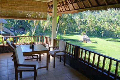 Komfortabel ausgestattete Schlafzimmer öffnen sich auf großzügige Veranden, die eine wunderschöne Aussicht über die angrenzenden Reisfelder und die umliegenden Hügel bieten. In ihrer sicheren Privatsphäre kann man sich ideal unterhalten, mit einem Buch entspannen oder sich zum Schreiben niederlassen. Ein wunderschöner Ort, um während Ihrer Balireise ein paar Tage das balinesische Landleben kennenzulernen.