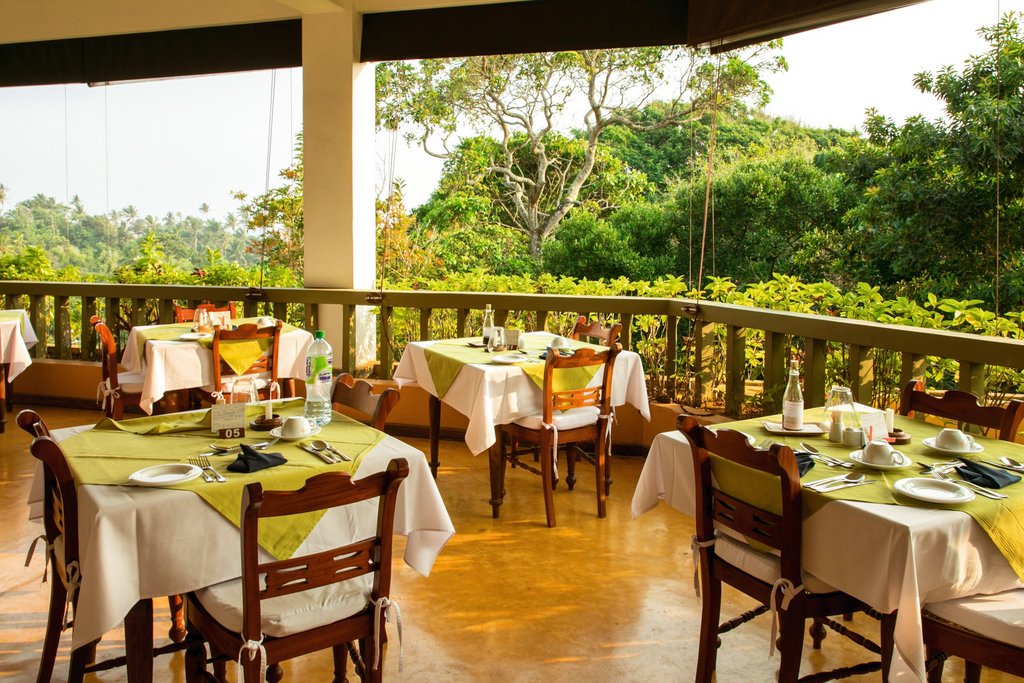 Das Restaurant befindet sich in bester Lage im vierten Stock des Hauptgebäudes, mit Blick über die reiche Vegetation bis zum Meer und auf die grünen Hügel. Das schmackhafte ayurvedische Essen wird Ihnen mittags in Buffetform und abends als Menü serviert. Die Gerichte, die die Köche für Sie zubereiten, werden Sie täglich aufs Neue überraschen und begeistern.