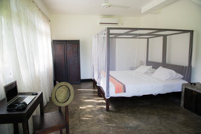 Die Deluxe Zimmer im Erdgeschoss haben geschlossene Wände, wobei die Zimmer in der oberen Etage zur Seite hin offen gestaltet sind. Zur Ausstattung gehören ein nach oben hin offenes Bad, Balkon bzw. Terrasse, Sitzecke sowie Ventilator, Moskitonetz und Safe. Die Zimmer im Erdgeschoss können auch als Dreibettzimmer belegt werden.