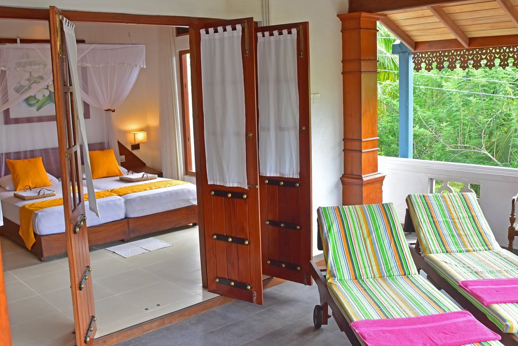Die beiden Zimmer der Safira Beach Residence befinden sich im ersten Stock direkt am Strand. Vom Balkon aus haben Sie einen traumhaften Blick über den weitläufigen mit Palmen gesäumten Strand und den Indischen Ozean. Die Zimmer sind liebevoll eingerichtet und haben ein eigenes Bad und WC. Ein Deckenventilator sorgt für eine angenehme Raumtemperatur.