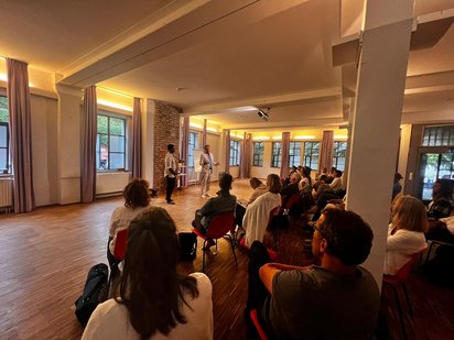- Sprache: Vortrag Englisch, Yoga-Stunde Deutsch