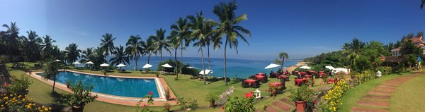 Ein wunderschön großzügig angelegtes Resort, das an einen sorgsam gepflegten, tropischen Garten erinnert, mit kleinen Häusern im keralischen Stil und terrassenartigen Gebäuden, in denen die Gästezimmer mit Blick aufs Meer untergebracht sind.