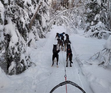 Am Donnerstag erwartete uns ein weiterer außergewöhnlicher Ausflug: Eine Hundeschlitten-Fahrt mit Alaskischen Huskys, die wir nach einer sorgfältigen Einführung selbst lenken durften! Welch ein Erlebnis, durch die tief verschneite Winterlandschaft zu fahren und zu spüren, welche Freude die Hunde an ihrer Arbeit haben! Ein warmes Picknick war wie immer bei den Ausflügen auch hier dabei.