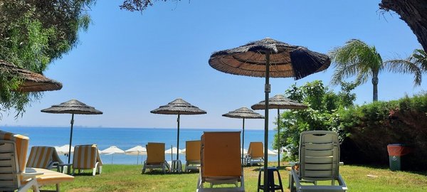 Am nächsten Tag sind wir zum Governor’s Beach gebracht worden und haben im schönen grünen Garten mit großem Baumbestand unsere Auszeit genossen. Die Sonnenliegen durften wir als Gast von Cyprus Villages kostenlos nutzen. In der kleinen Strandbar wurden wir mir kleinen Erfrischungen verwöhnt.