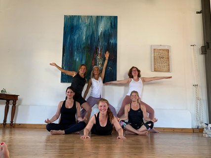 Nach einer weich-fließenden, mobilisierenden und aktivierenden Yogastunde, die immer wieder den Ansatz hatte von Aktivität und Ruhe, ein Ankommen bei sich selbst und den Alltag in den Hintergrund treten zu lassen. Nach einer sanften ersten Yogaeinheit, erkannte ich schnell die Befindlichkeiten meiner Teilnehmer. Hier der Vorteil einer kleinen Gruppe, ich konnte auf alle eingehen und meine Teilnehmerinnen fühlten sich gesehen und waren schnell bereit sich auf meinen fließenden Yoga-Stil einzulassen. Immer wieder mit den bewussten Momenten von Atem, Aufmerksamkeit und Bewegung, Meditation und Atemübungen.