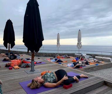 Morgens wurden wir auf der wunderschönen Sonnenterrase des Hotel Estalagem bei unseren energiereichen Runen-Übungen und kraftvollen Yang-Yoga-Sequenzen von der Sonne wach geküsst und vom Wind sanft liebkost. Am Abend haben wir dann im stimmigen Yogaraum entspannende Yin-Sequenzen und tiefes Loslassen genossen. Jeder Teilnehmende konnte sein eigenes, auf allen Ebenen nährendes Yoga praktizieren.