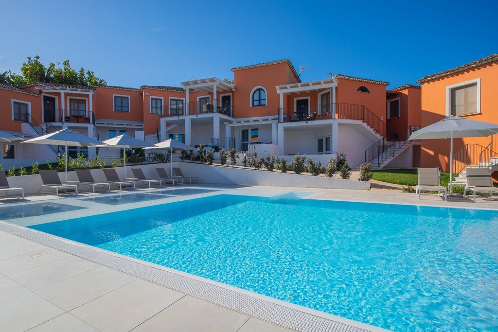 Das Hotel liegt oberhalb der Badebucht von Torre di Bari, in zehn Gehminuten erreichen Sie den weitläufigen Strand mit klarem Wasser. Die Zimmer verteilen sich auf mehrere Gebäude: Superior-Zimmer im Haupthaus (teilweise mit Meerblick), Galanias-Zimmer in Nebengebäuden im Garten, Pool- und Deluxe-Zimmer am unteren Poolbereich.