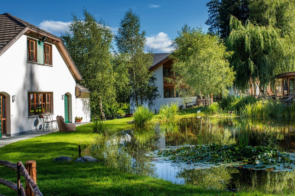 Das Saunahaus aus heimischem Holz fügt sich harmonisch in den Garten ein, während der adults-only Saunabereich am Seerosenteich pure Entspannung verspricht. Bio-Kräutersauna, Dampfbad und finnische Fichtensauna verwöhnen Sie mit den Düften von Rosmarin und Zirbel. Eine Tee-Lounge und Panorama-Ruheräume mit kuscheligen Relax-Kojen runden den Wellness-Bereich ab. Im beheizten Indoor-Naturpool schwimmen Sie mit Blick auf tanzende Libellen. Der Outdoor-Kneippbereich und Barfußpfad verbinden Sie direkt mit der Natur. Massagen und Naturkosmetik-Anwendungen ergänzen das Spa-Erlebnis.