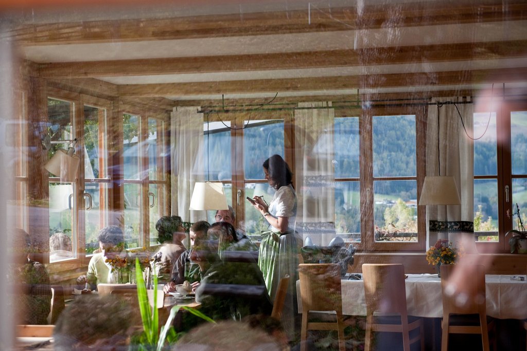 Was auf Ihren Teller kommt, wächst wenige Meter entfernt im Hotelgarten oder auf den umliegenden Bauernhöfen. Familie Tauber bewirtschaftet ihre eigene Landwirtschaft und serviert Ihnen morgens auf der Veranda ein reichhaltiges Buffet mit hausgemachten Marmeladen, Freilandeiern und knusprigem Brot. Abends werden Sie in der historischen Zirmstube mit einem Vier-Gänge-Menü verwöhnt – selbstverständlich auch vegetarisch. Jeder Bissen erzählt von der Sorgfalt, mit der hier Tradition und bewusste Ernährung verbunden werden.