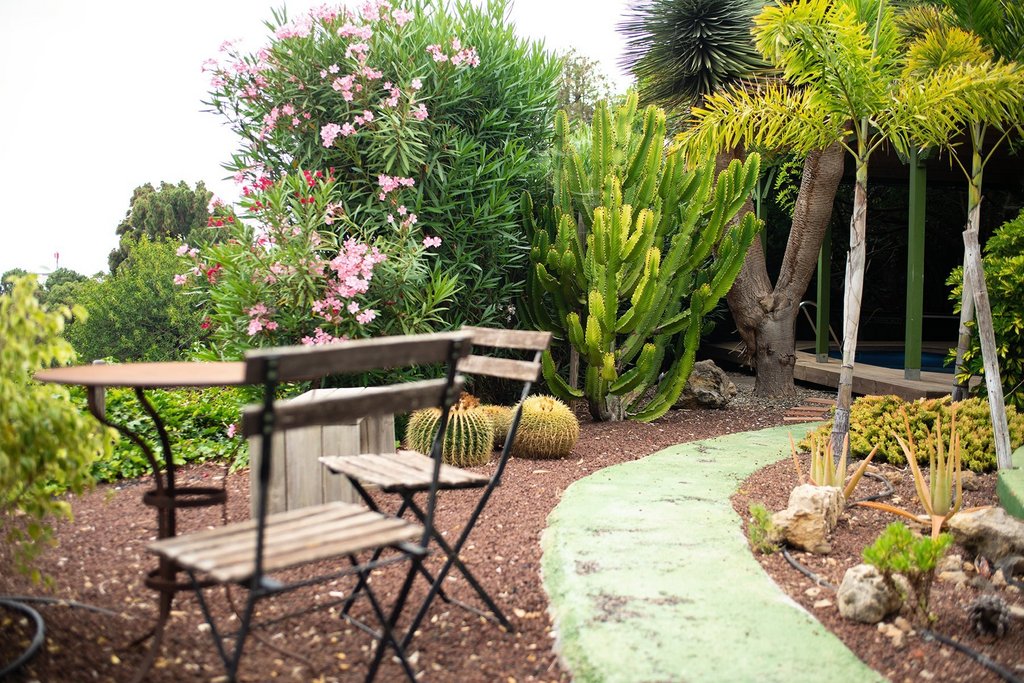 Die Casita Ayurveda liegt im grünen Norden Teneriffas, oberhalb von Icod de los Vinos – fernab der Touristenströme in einer landwirtschaftlich geprägten Gegend. Das dreistöckige Haus beherbergt drei Gästezimmer. Jedes Zimmer verfügt über ein eigenes Bad, Meerblick in der Ferne sowie Bademantel, Haartrockner, Bio-Mundziehöl und Zungenschaber. Der terrassierte Garten mit Palmen und Obstbäumen bietet Rückzugsorte und Weitblick auf den Atlantik. Sollten die Zimmer ausgebucht sein, stehen Appartements in der Finca Palmeras zur Verfügung – in 15 Minuten fußläufig erreichbar. Bitte beachten Sie: Haus und Garten verfügen über viele Treppen und sind nicht barrierefrei.
