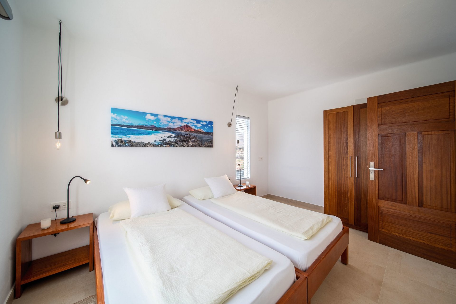Das Appartement "Punta de la Pared" ist 43 qm groß und liegt in der Casa Santa Maria, nur einen kleinen Spaziergang vom Meer entfernt. Es gibt ein Schlafzimmer mit zwei Einzelbetten, ein eigenes Badezimmer, eine Wohnküche mit Couchecke und eine Sonnenterrasse mit Meerblick. Ein Haartrockner ist vorhanden. Das Appartement kann auch zur Alleinbenutzung gebucht werden.