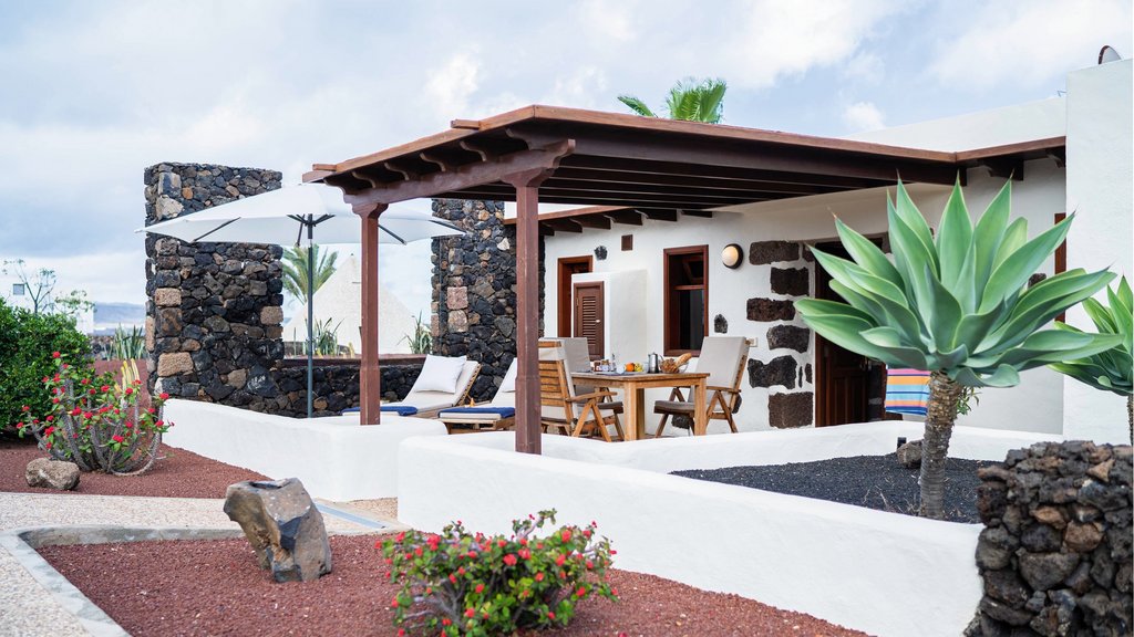 Grüne Kakteen leuchten zwischen dunklen Lavasteinen, während das türkisblaue Meer am Horizont glitzert. Sie wohnen in traditionell gestalteten Appartements, die sich auf drei Gebäudekomplexe verteilen und harmonisch in die Landschaft fügen. Ihre täglichen Yoga-Einheiten verbinden Sie mit der kraftvollen Energie der Vulkaninsel.
