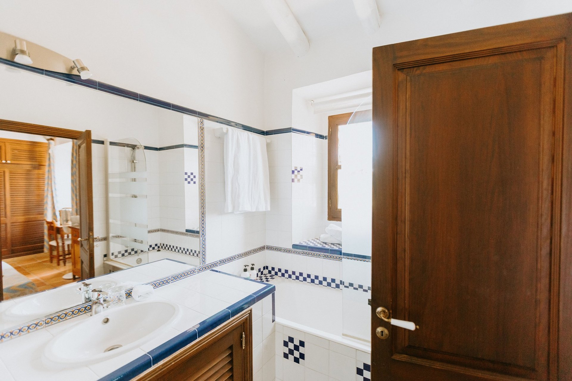 Die beiden Doppelzimmer „Mallorca“ liegen im ersten Stock des Haupthauses über der Restaurant-Terrasse und verfügen über ein eigenes Bad mit Föhn. Shampoo und Duschgel sind vorhanden. Beide Zimmer sind geräumig und hell. Die Fenster öffnen sich zum Garten hin mit entferntem Meerblick. Diese Zimmer haben keinen Balkon oder Terrasse. Die Betten können getrennt werden. Zu den Annehmlichkeiten gehören Safe, Wasserkocher, Thermoskanne und Teebeutel, ebenso wie eine Pool-Tasche mit Bademantel und Pool-Handtuch. Im Juli und August ist die Nutzung der Zimmerkühlung kostenfrei, in den anderen Monaten kann diese gegen eine Gebühr von 50 Euro vor Ort hinzugebucht werden. Auch zur Alleinnutzung buchbar. (Beispielbilder)