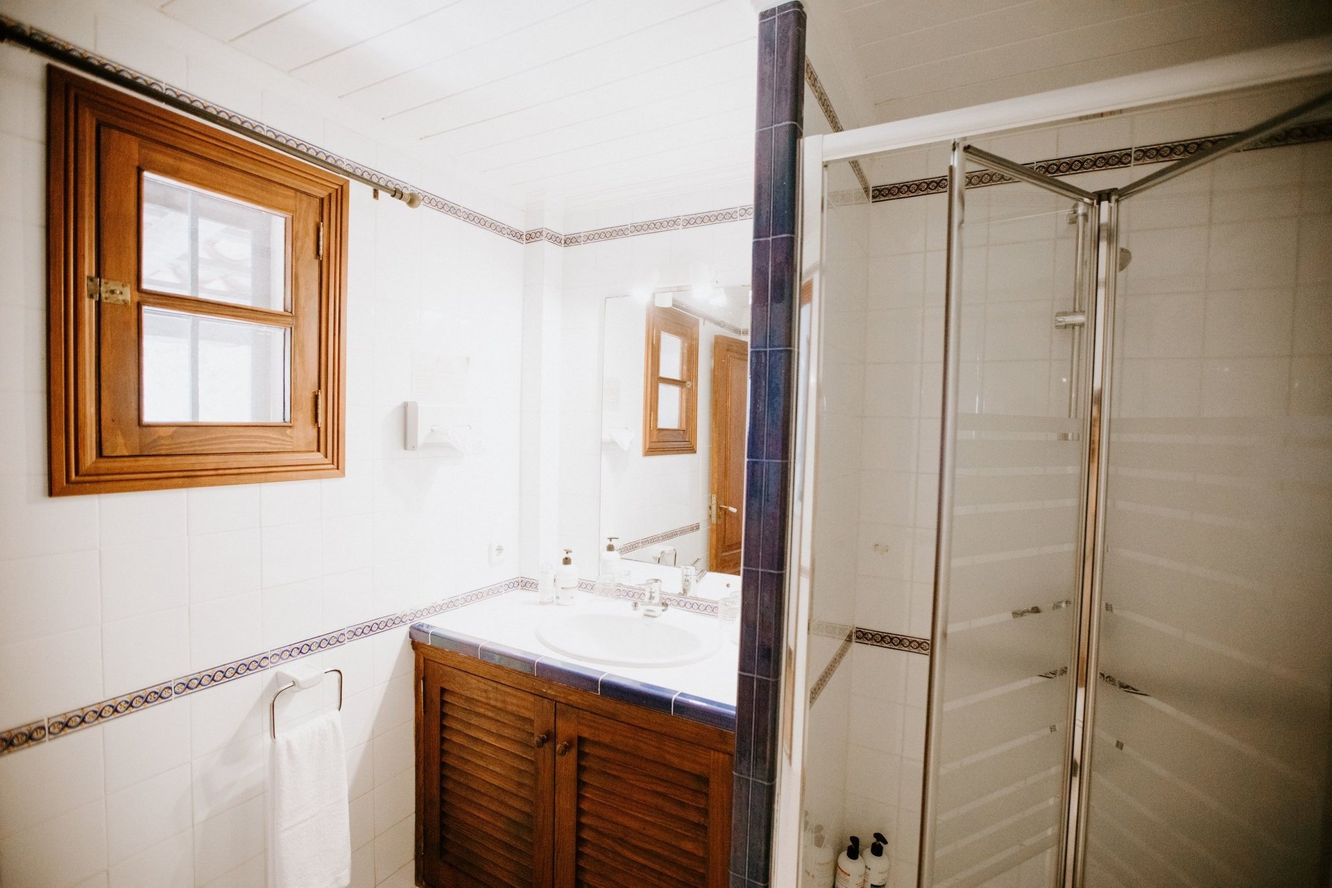 Es gibt zwei Appartements im Haupthaus, welche über zwei Einzelzimmer und ein gemeinsames Bad mit Föhn verfügen. Shampoo und Duschgel sind vorhanden. Das Appartement „Formentera“ verfügt über eine große überdachte Terrasse und das „Ibiza“ über einen Balkon mit Weitblick. Diese beiden Zimmer sind zum Garten ausgerichtet, hell und geräumig. Die Betten sind 1,60m breit. Zu den Annehmlichkeiten gehören Safe, Wasserkocher, Thermoskanne und Teebeutel, ebenso wie eine Pool-Tasche mit Bademantel und Pool-Handtuch. Im Juli und August ist die Nutzung der Zimmerkühlung kostenfrei, in den anderen Monaten kann diese gegen eine Gebühr von 50 Euro vor Ort hinzugebucht werden. (Beispielbilder)