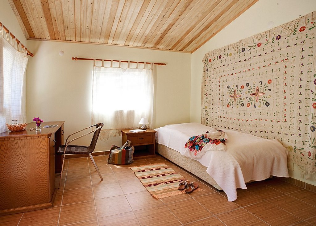 • Vegetarische, vegane Vollpension (F, M, A), zusätzlich tagsüber Quellwasser, Kräutertees, türkischer Çay, frisches Obst