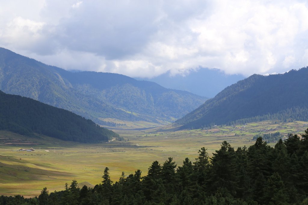 Die Weiterfahrt führt durch die dichten Wälder und engen Schluchten der Schwarzen Berge - eine landschaftlich besonders reizvolle Strecke. Mit etwas Glück entdecken Sie hoch in den Baumkronen graue Languren-Affen und verschiedene Vogelarten. Das abgelegene Phobjikha-Tal liegt fernab der "Bhutan-Hauptstraße" und ist Winterquartier der seltenen „Black-necked“-Kraniche, die in Bhutan als heilige Vögel und Symbol der Langlebigkeit verehrt werden.